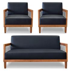 O menor preço encontrado no Brasil para Kit 2 Poltronas E Sofá Living 2 Lugares Marilia 1,60m Corano Preto Base Em Madeira Castanho atualmente é R$ 9.424,71.
