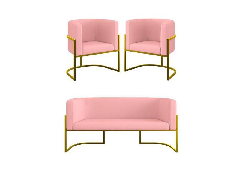 Kit 2 Poltronas + Sofá 2 Lugares para Recepção Gold Veludo - B BALAQUI