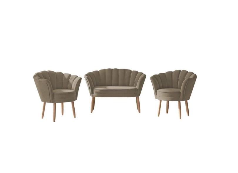 Kit 2 Poltronas + Sofá 2 Lugares Veludo Sala Decorativa Flor Cor:capuccino Capuccino