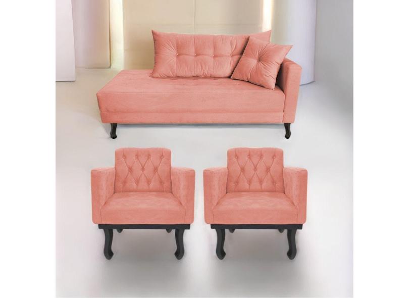 Kit Diva Recamier Azura 140cm Lado Esquerdo e 02 Poltronas Classic Suede - ADJ Decor
