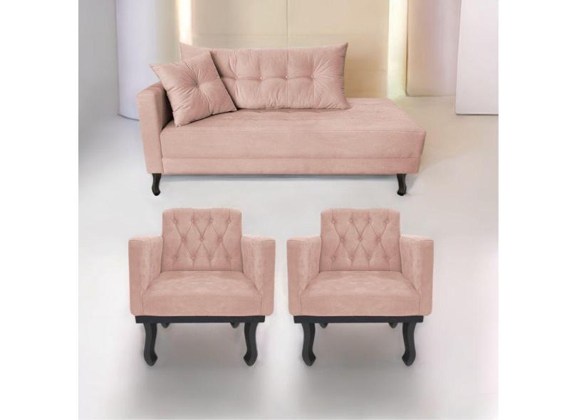 Kit Diva Recamier Azura 185cm Lado Direito e 02 Poltronas Classic Suede Rosê