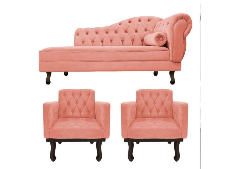 Kit Diva Recamier Diana 130Cm Lado Esquerdo E 02 Poltronas Classic Suede Coral