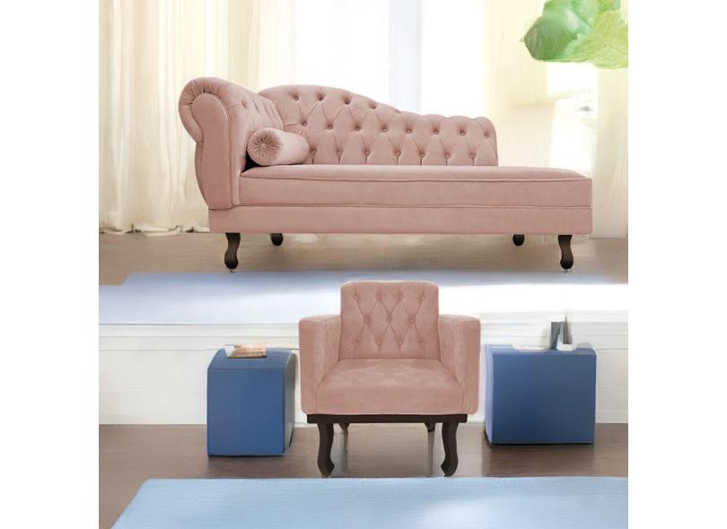 Kit Diva Recamier Diana 140cm Lado Direito e 01 Poltrona Classic Suede Rosê