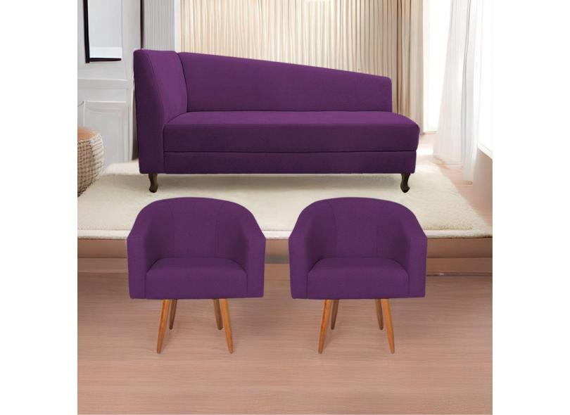 Kit Diva Recamier Heitor 140Cm Lado Direito E 02 Poltronas Luiza Suede - Doce Sonho Móveis Roxo