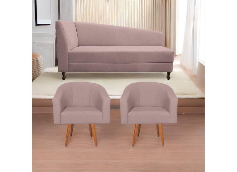 Kit Diva Recamier Heitor 185Cm Lado Direito E 02 Poltronas Luiza Linho - Amarena Móveis Rosê