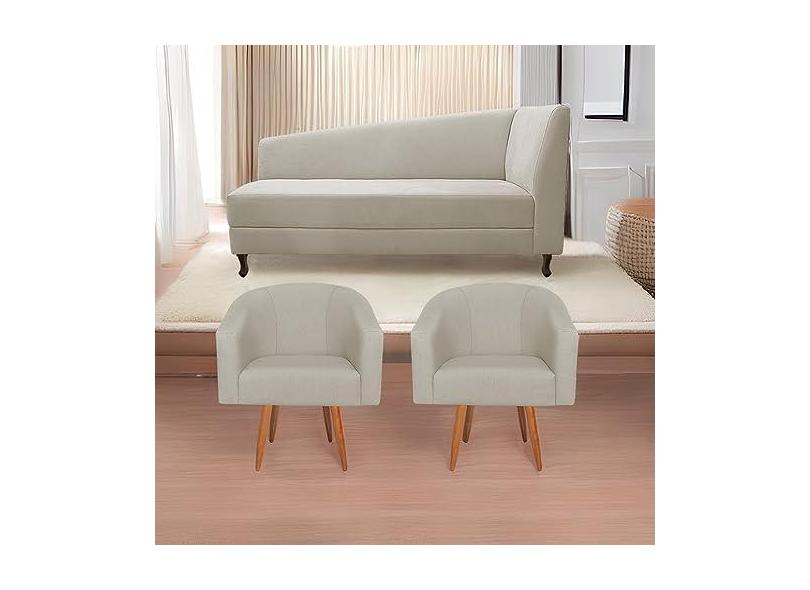 Kit Diva Recamier Heitor 185cm Lado Esquerdo e 02 Poltronas Luiza Linho Bege - Amarena Móveis