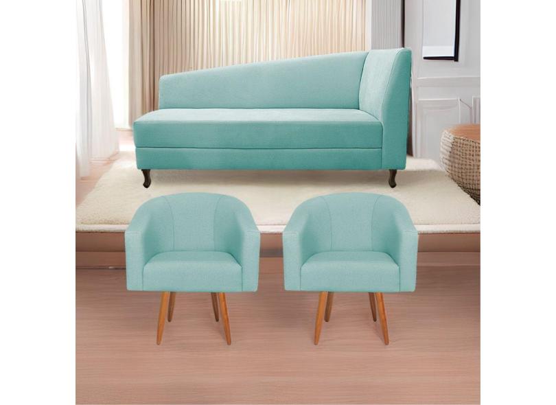 Kit Diva Recamier Heitor 185cm Lado Esquerdo e 02 Poltronas Luiza Suede Azul Tiffany