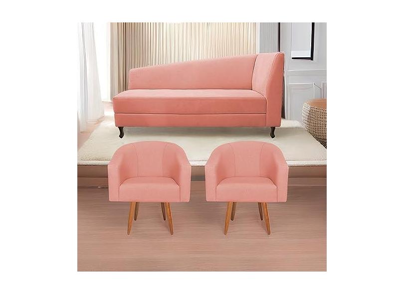 Kit Diva Recamier Heitor 185cm Lado Esquerdo e 02 Poltronas Luiza Suede Coral - Amarena Móveis