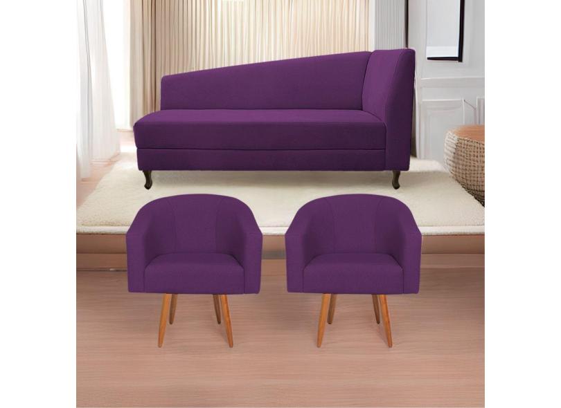 Kit Diva Recamier Heitor 185Cm Lado Esquerdo E 02 Poltronas Luiza Suede - Doce Sonho Móveis Roxo