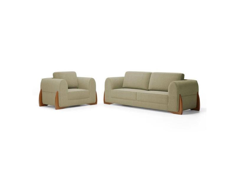 O menor preço encontrado no Brasil para Kit Poltrona E Sofá Bloom 220cm 03 Lugares Com Pés De Madeira Bouclê Bege - Desk Design atualmente é R$ 7.611,11.