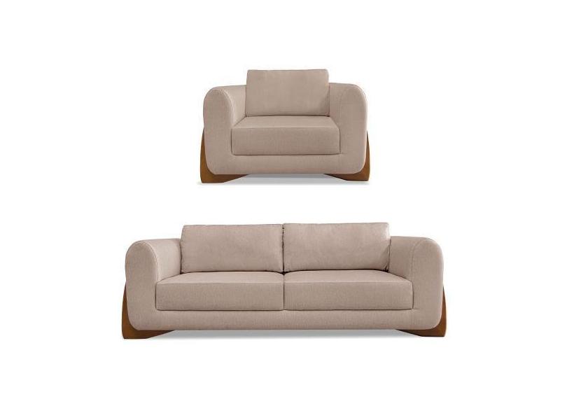 Kit Poltrona E Sofá Living 2 Lugares 1,60M Lottus Linho Areia Pés Cast