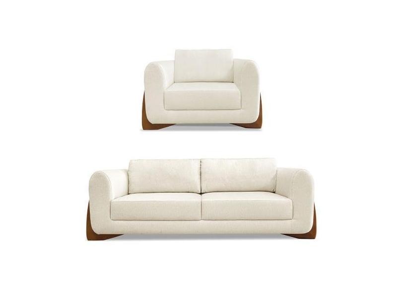 Kit Poltrona e Sofá Living 2 Lugares 1,60m Lottus Linho Natural Pés Ca