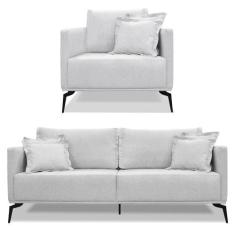 Kit Poltrona E Sofá Living 2 Lugares 1,60M Sirius Linho Cinza Pés Metá