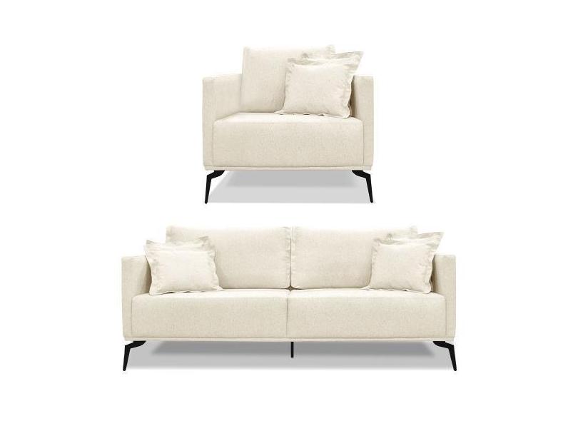 Kit Poltrona E Sofá Living 2 Lugares 1,60M Sirius Linho Natural Pés Me