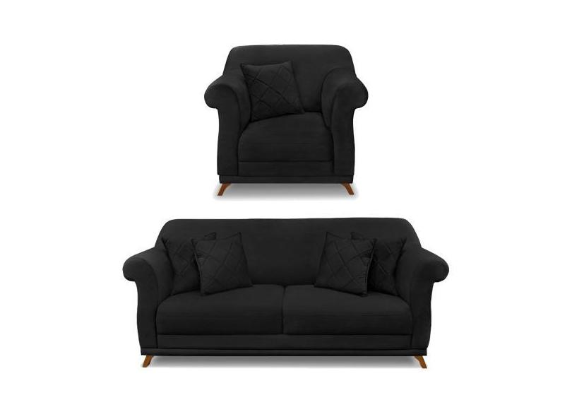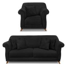 Kit Poltrona E Sofá Living 2 Lugares 1,80M Vênus Suede Pés Castanho -