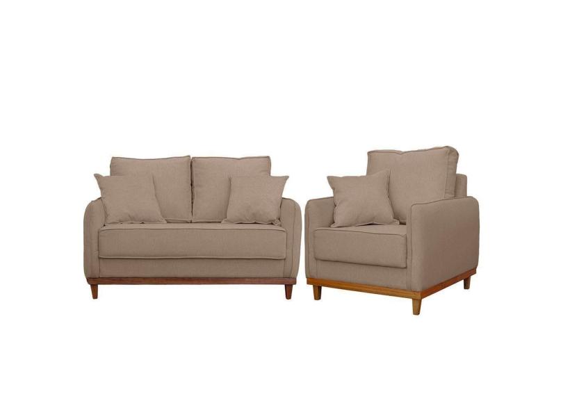 O menor preço encontrado no Brasil para Kit Poltrona E Sofa Sena 2 Lugar Base De Madeira Para Sala Hotel Linho Marrom atualmente é R$ 2.728,00.