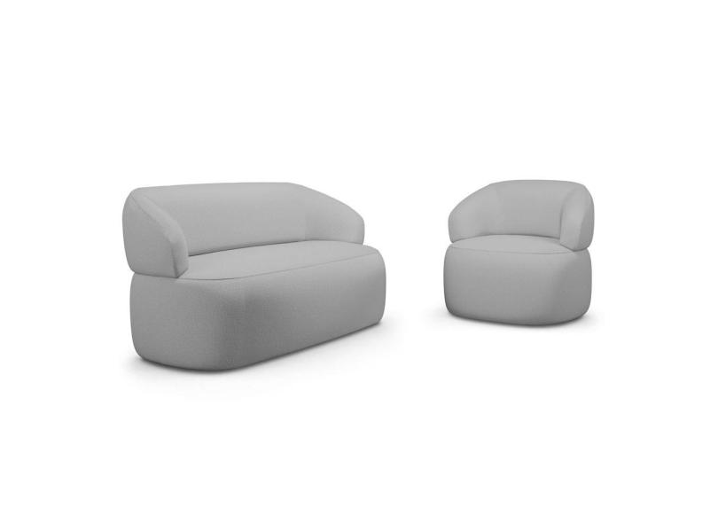 Kit Poltrona Giratória e Sofá Orgânico Living Glee 02 Lugares 140cm Linho Cinza - Desk Design