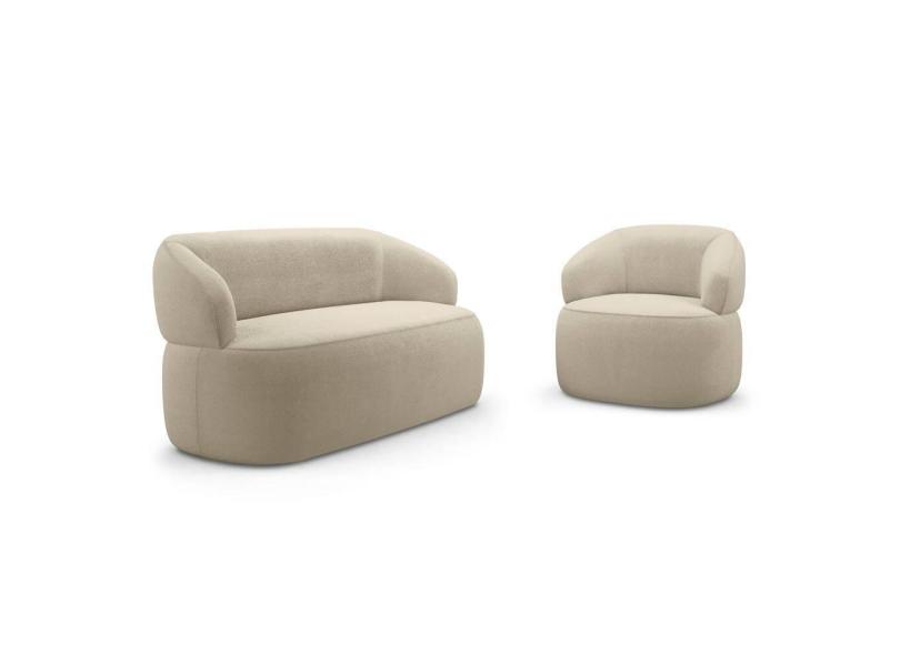 Kit Poltrona Giratória e Sofá Orgânico Living Glee 03 Lugares 170cm Bouclê Bege - Desk Design