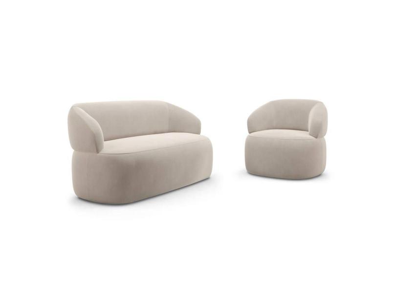Kit Poltrona Giratória e Sofá Orgânico Living Glee 03 Lugares 170cm Veludo Bege - Desk Design