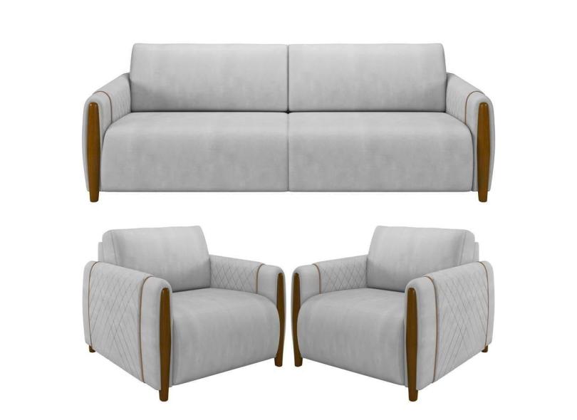O menor preço encontrado no Brasil para Kit Sofá 03 Lugares 223Cm Com 02 Poltronas Flora M03 Cinza atualmente é R$ 6.765,35.