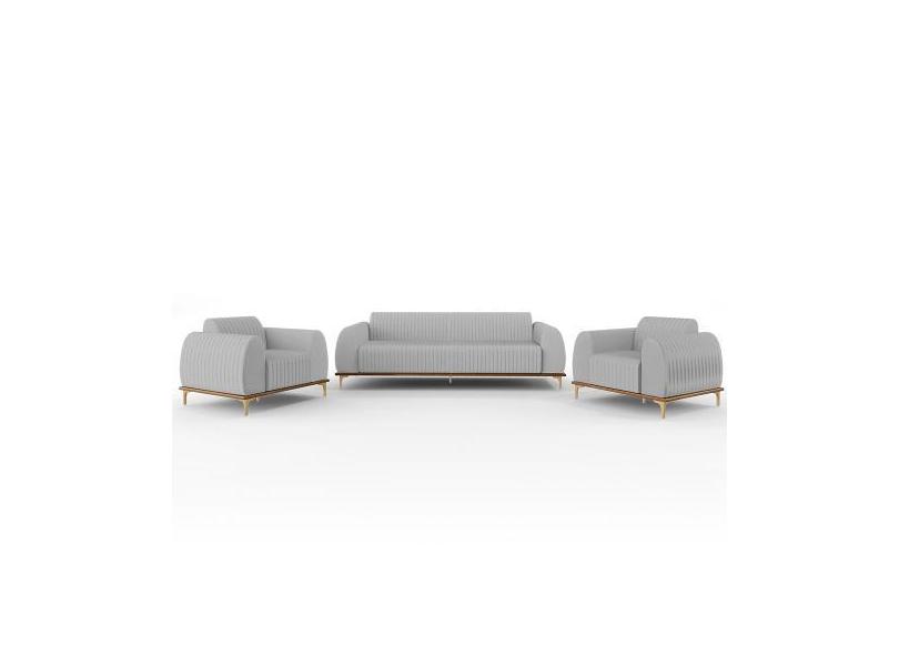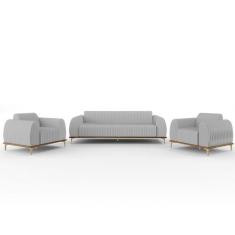 Kit Sofá 2 Lugares 150cm Com 2 Poltronas Molino Pés D'ouro D02 Linho C