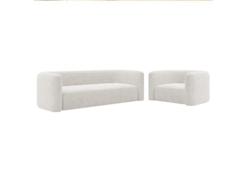 Kit Sofá 2 Lugares 160cm E Poltrona Orgânica Luxo Recepção Melina Bouclé - Amarena Moveis Cor Branco