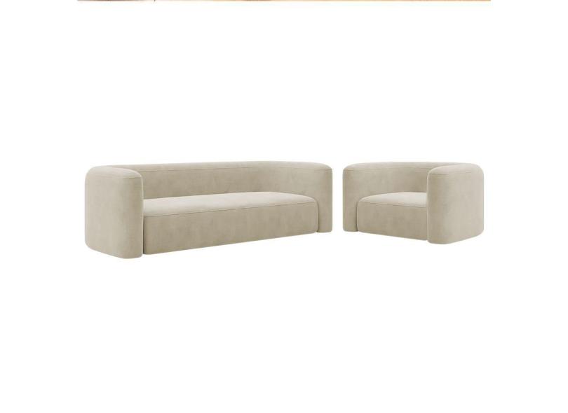 Kit Sofá 2 Lugares 160cm E Poltrona Orgânica Luxo Recepção Melina Bouclé Cor Suede Bege