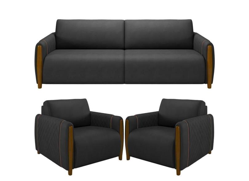 O menor preço encontrado no Brasil para Kit Sofá 2 Lugares 168Cm Com 02 Poltronas Flora M03 Preto atualmente é R$ 7.030,23.