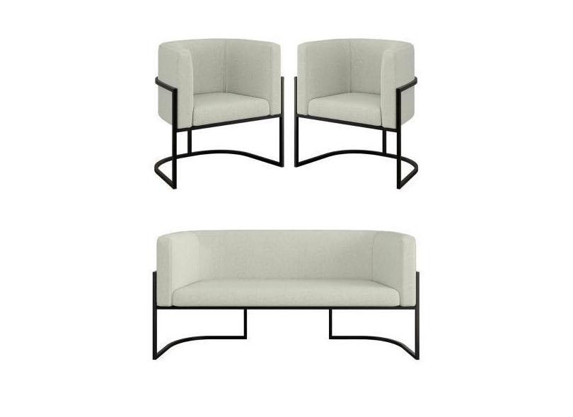 Kit Sofá 2 Lugares + 2 Poltronas Bouclê para Recepção Preto - B Balaqu
