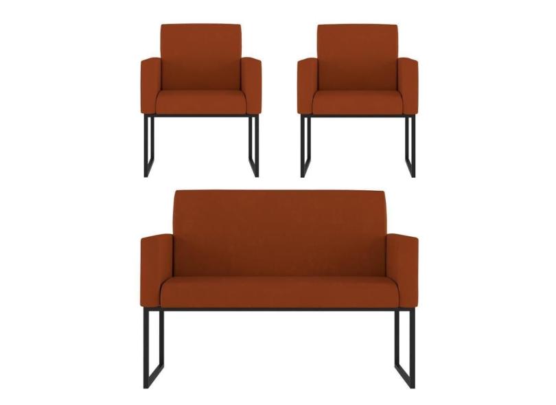 Kit Sofá 2 Lugares + 2 Poltronas Para Recepção Sala Balaqui Cor:terracota Terracota