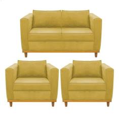 Kit Sofá 2 Lugares E 2 Poltronas Europa Suede Amarelo Doce Sonho Móvei
