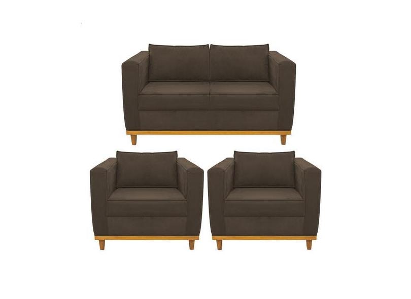 Kit Sofá 2 Lugares e 2 Poltronas Europa Suede Marrom Amarena Móveis