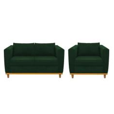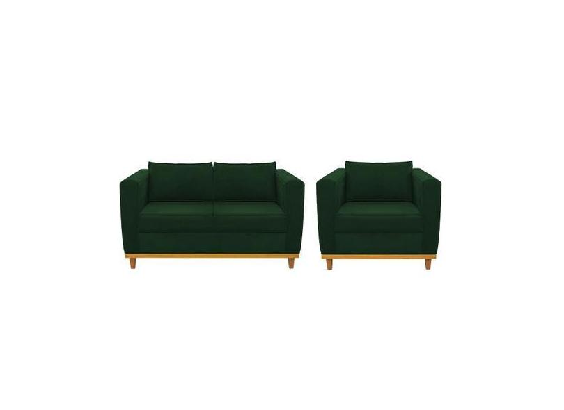 Kit Sofá 2 Lugares e Poltrona Europa Suede Verde Amarena Móveis