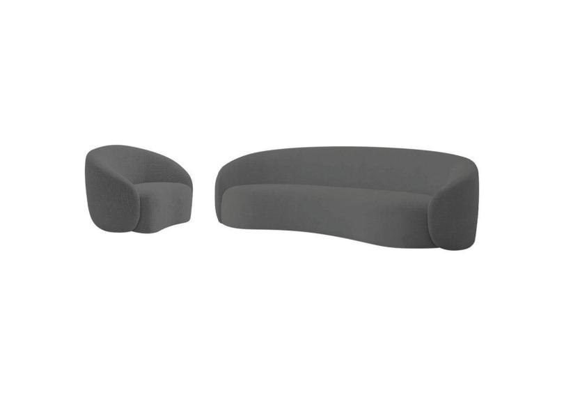 Kit Sofá 3 Lugares 200cm E Poltrona Orgânica Luxo Recepção Amore Linho Cinza Escuro
