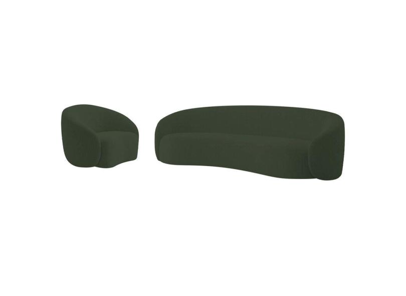 Kit Sofá 3 Lugares 200cm E Poltrona Orgânica Luxo Recepção Amore Linho Cor Verde