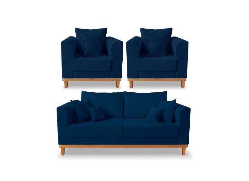 O menor preço encontrado no Brasil para Kit Sofá 3 Lugares e 2 Poltronas Beny Viena Para Recepção Suede Azul - atualmente é R$ 1.329,81.