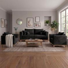 Kit Sofá 3 Lugares e 2 Poltronas Beny Viena Suede Preto - Madeira Prim