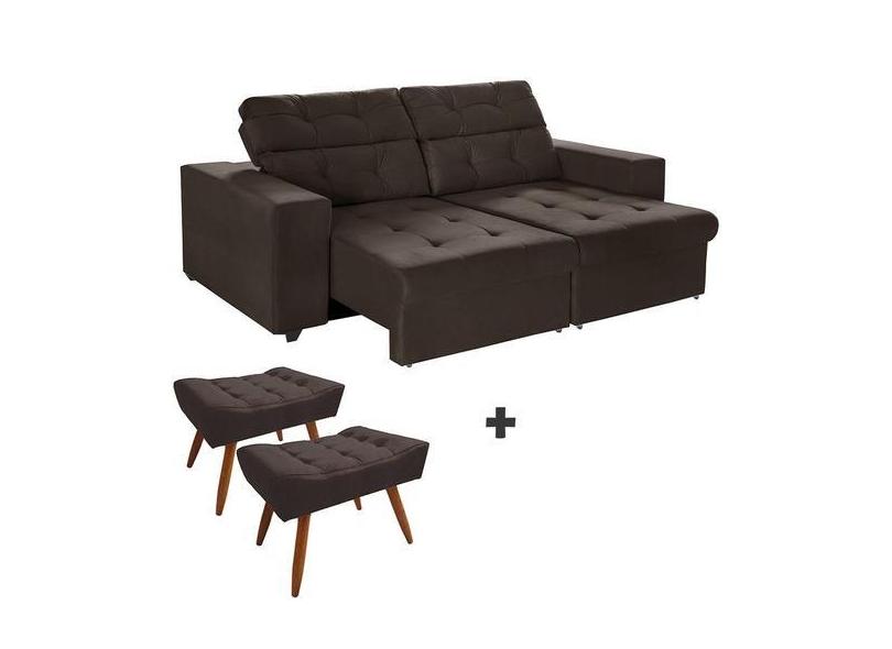Kit Sofá 3 Lugares New Itália 200cm Marrom Retrátil Reclinável, Com 2