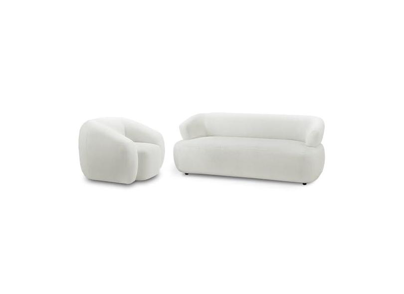 Kit Sofá 3 Lugares Para Sala 198cm Com 01 Poltrona Orgânica Florea M05 Bouclê Creme - Lyam Decor
