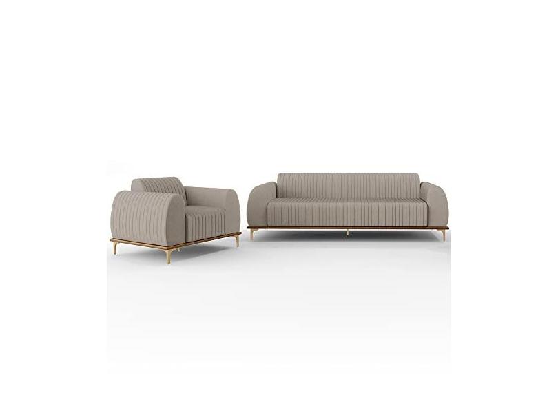 O menor preço encontrado no Brasil para Kit Sofá 3 Lugares Sala Estar 210cm Com Poltrona Molino Pés D'ouro D02 Linho Bege C-107 - Lyam Decor atualmente é R$ 9.334,90.