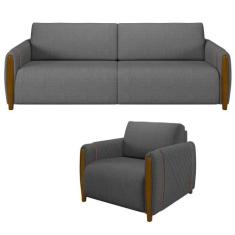 Kit Sofá 3 Lugares Sala Estar 223cm Com Poltrona Flora Pés De Madeira