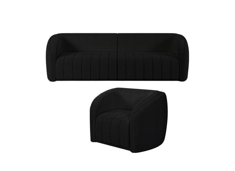 Kit Sofá 4 Lugares Para Sala 252cm com 01 Poltrona Lazio M03 Bouclê Preto - Lyam Decor