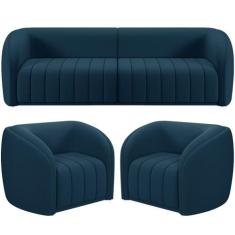 Kit Sofá 4 Lugares Para Sala 252cm com 02 Poltronas Lazio M03 Veludo A