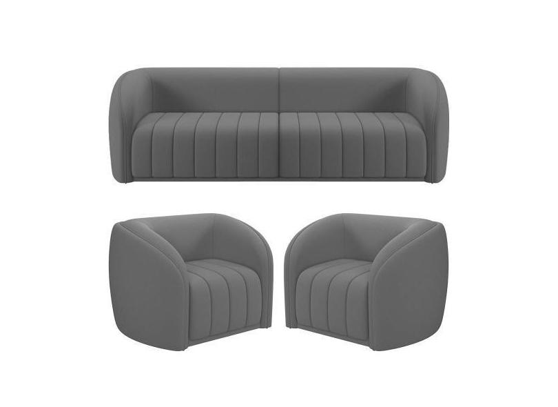 Kit Sofá 4 Lugares Para Sala 252cm Com 02 Poltronas Lazio M03 Veludo C