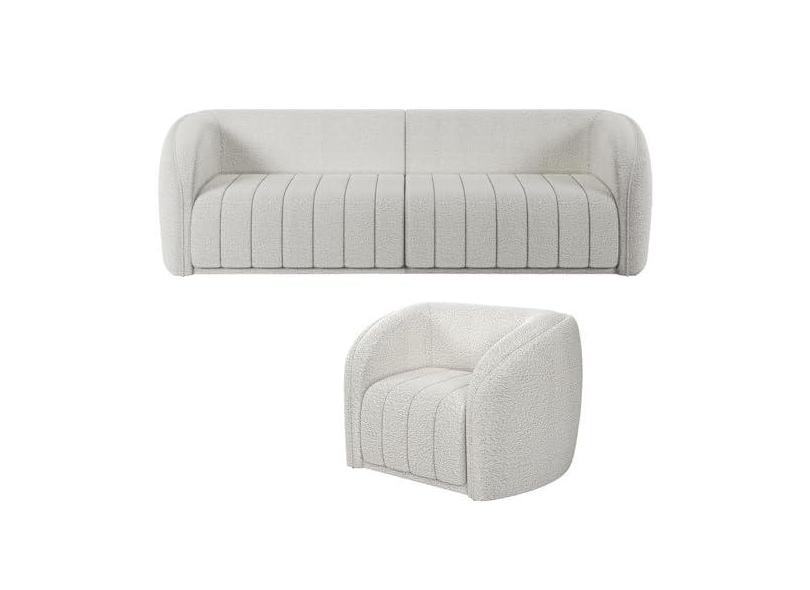 Kit Sofá 4 Lugares Para Sala 292cm com 01 Poltrona Lazio M03 Bouclê Branco - Lyam Decor