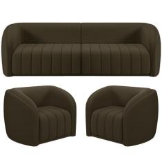 Kit Sofá 5 Lugares Para Sala 332cm Com 02 Poltronas Lazio M03 Veludo M