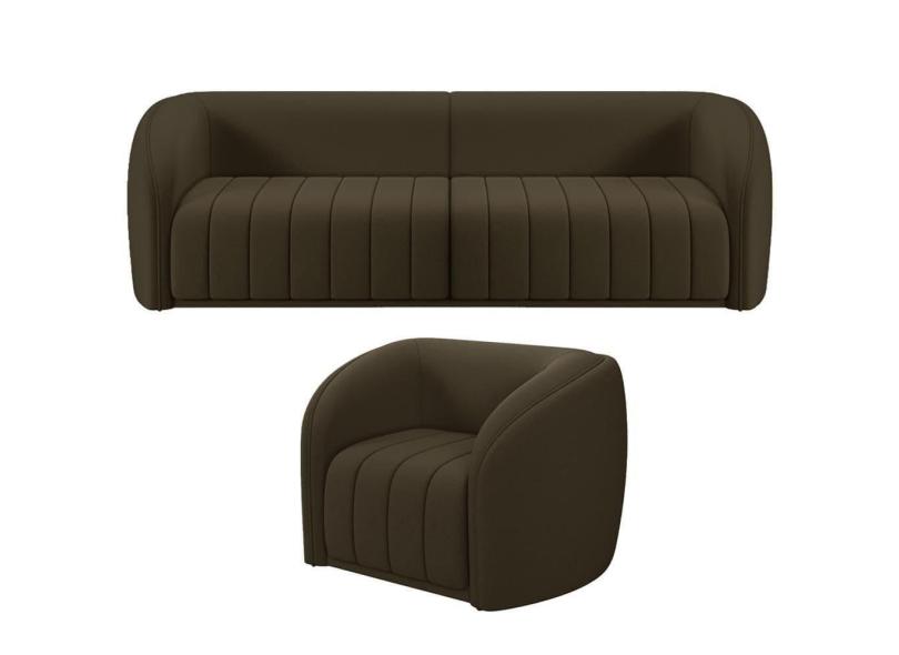 Kit Sofá 5 Lugares Para Sala Estar 332 Cm Com 01 Poltrona Lazio M03 Veludo Marrom - Lyam Decor