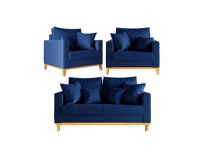 Kit Sofá Beny 140cm + 2 Poltronas Base De Madeira Linho - Renascer Dec