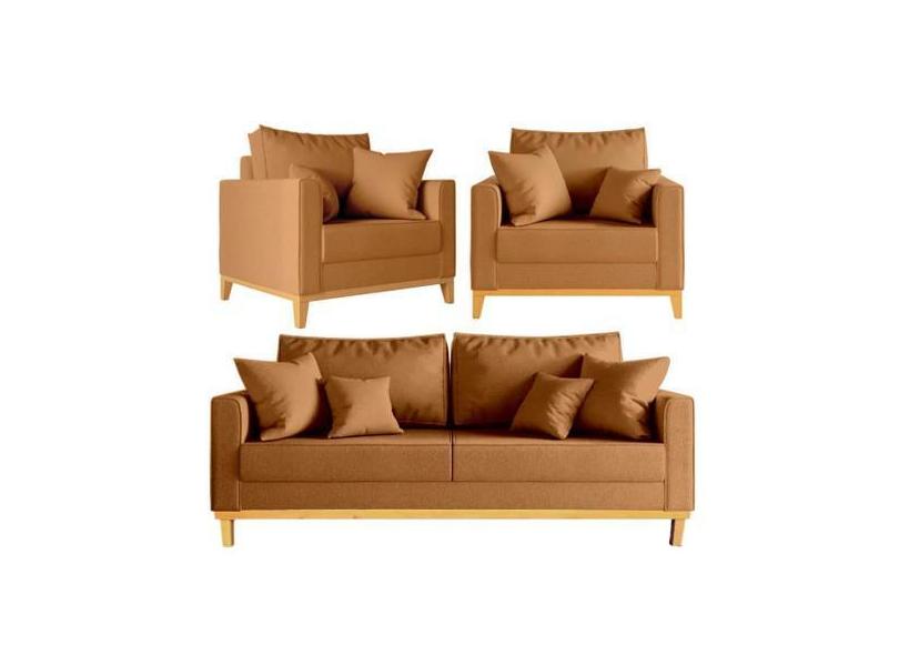 Kit Sofá Beny 180cm + 2 Poltronas Base De Madeira Linho - Renascer Dec