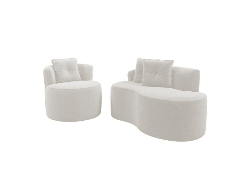 Kit Sofá e Poltrona Orgânica Living Bob com Almofadas Bouclê Off White - Desk Design